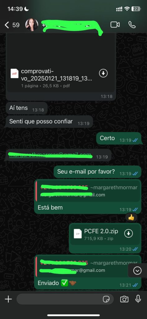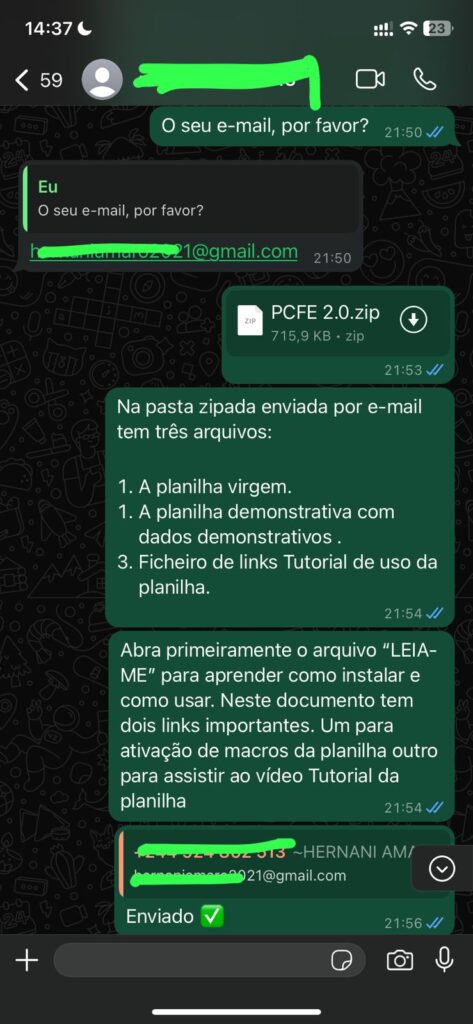 Após partilhar o comprovante poderá receber a planilha por email e pelo whatsapp.